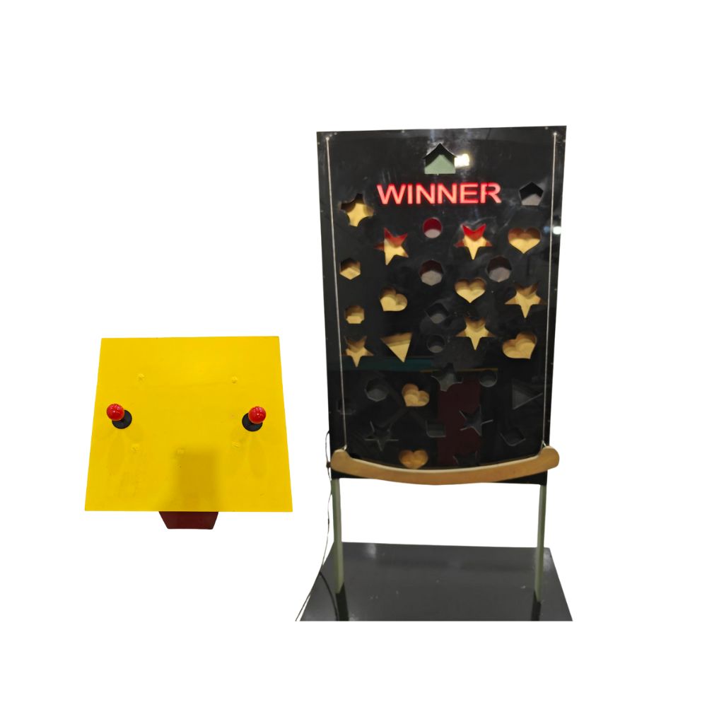 Players roll wooden balls toward pins. Each knocked pin gives 1 point. The highest score wins.